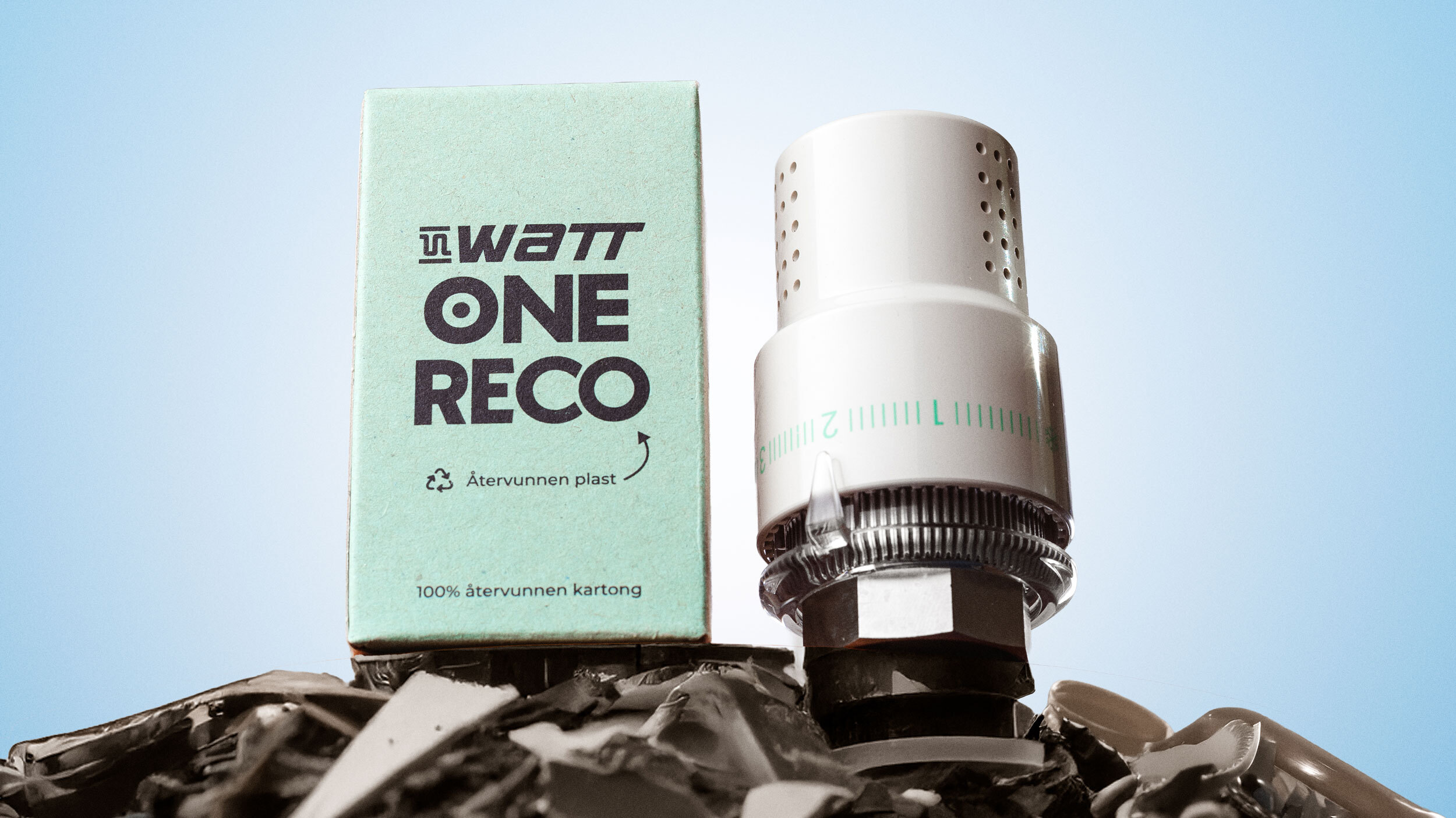 Watt ONE RECO är termostaten som gör skillnad. Tillverkad i återvunnen plast med miljövänlig ecobrass-mutter. Stilren, exakt och smart – med frostskydd, tydlig skala och möjlighet att begränsa temperaturen. Ett självklart val för hållbara installationer.