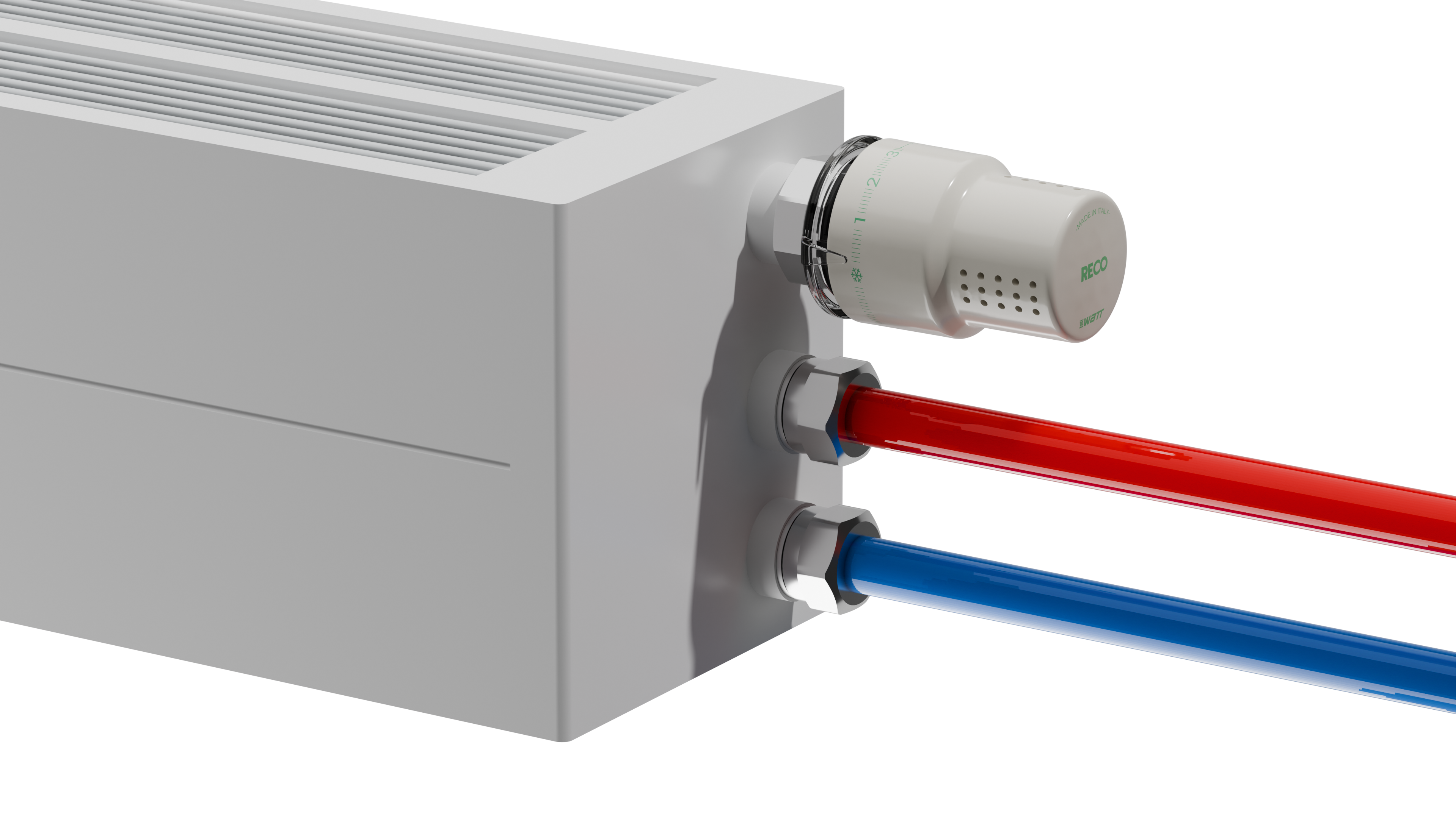 Watt ONE RECO är termostaten som gör skillnad. Tillverkad i återvunnen plast med miljövänlig ecobrass-mutter. Stilren, exakt och smart – med frostskydd, tydlig skala och möjlighet att begränsa temperaturen. Ett självklart val för hållbara installationer.